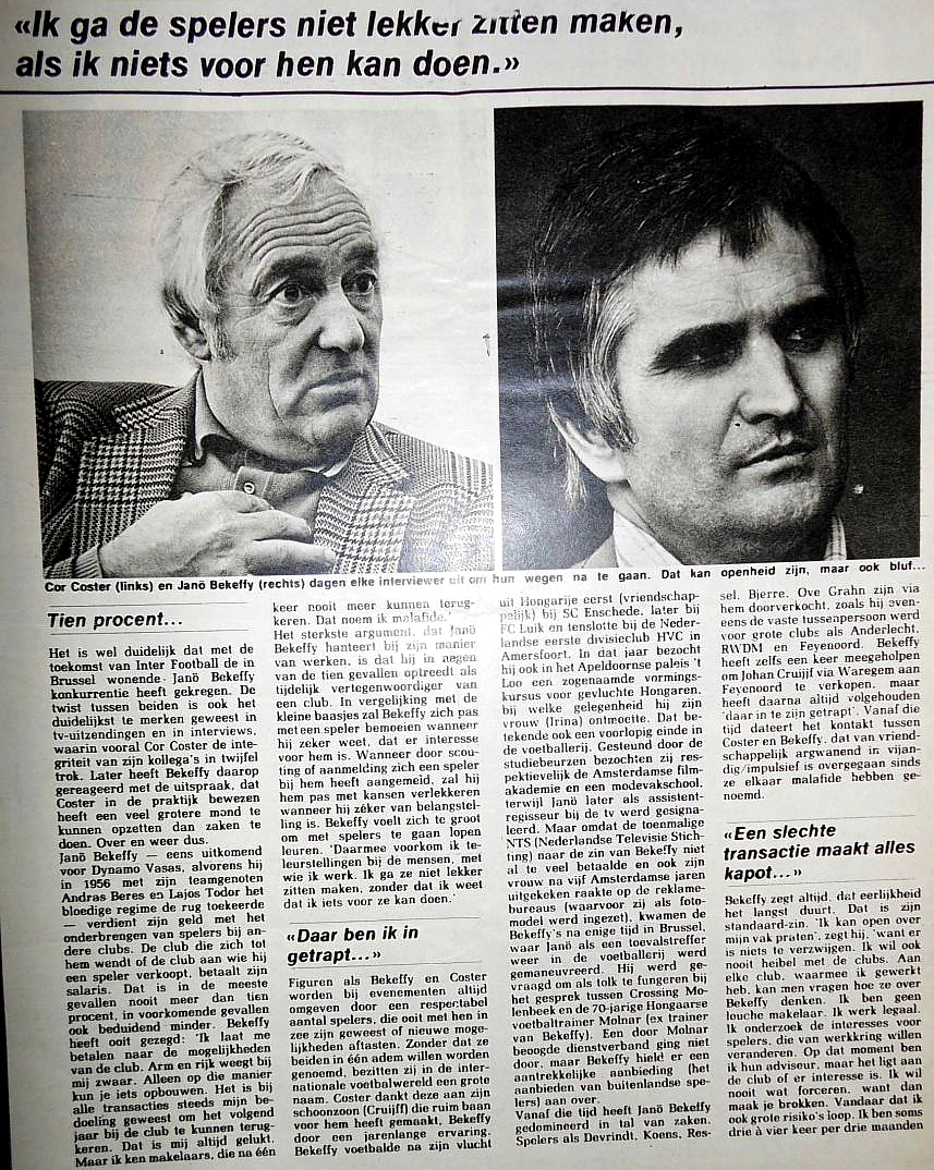 Sujet: Békeffy Jenő, Attila Ladinszky, Arie Haan, Peter Ressel, Van Haecke, Johnny Reb, Bloemberg Sip, Nicolaes, Johan Devrindt, Rob Rensenbrink, Johan Cruyff, Ove Grahn, Kresten Bjerre, Cor Coster