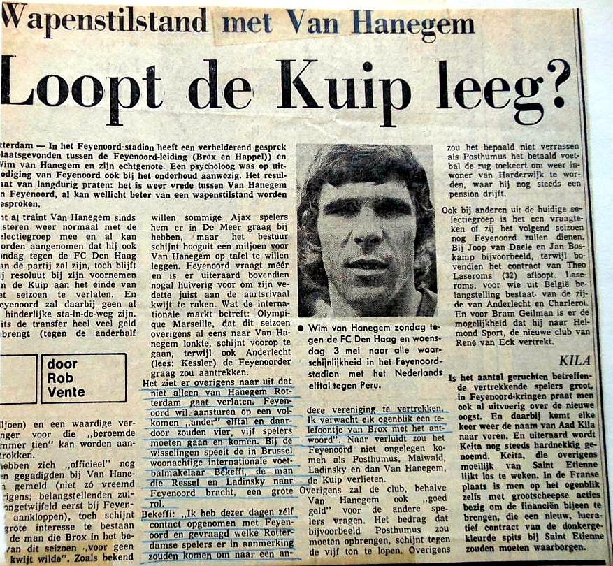 Date: 1981 Sujet: Békeffy Jenő, Wim Van Hanegem Club: Feyenoord FC