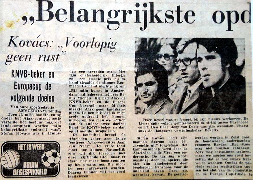 Date: 1979 Sujet: Békeffy Jenő, Stefan Kovács, Peter Ressel Clubs: AFC Ajax, RSC Anderlecht