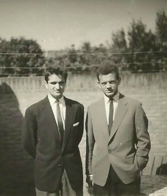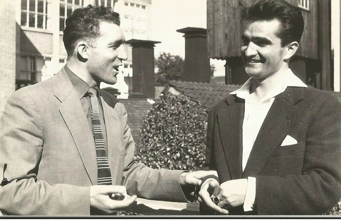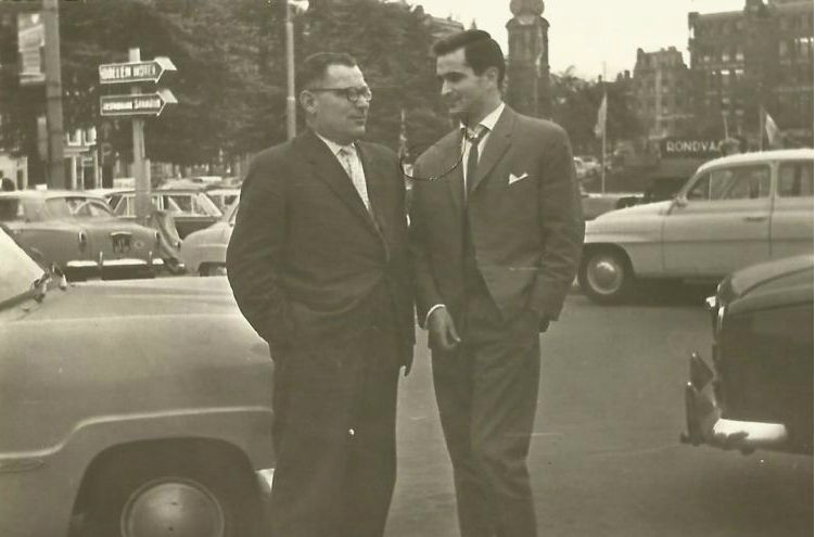 A fényképen látható személyek Johan Cruyff apósa Cor Coster, Békeffy Jenővel.